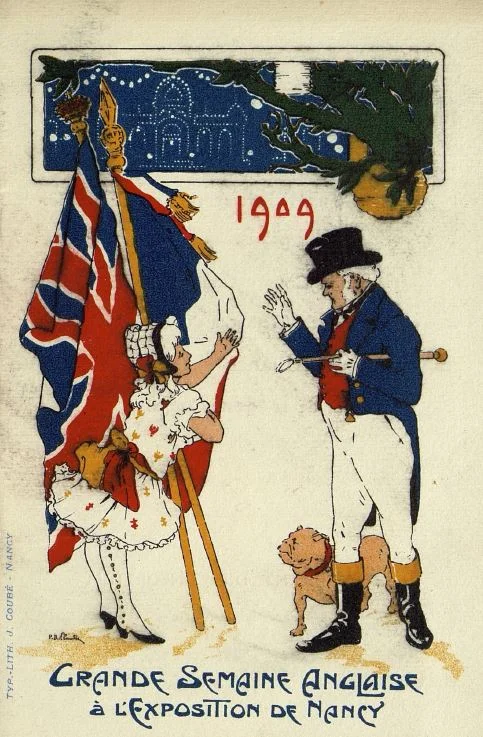 La semaine anglaise : série de cartes postables sur l'événement - Programme officiel des fêtes - Menu du banquet de l'exposition - Menu du dîner de la municipalité - Menu du déjeuner du Comité républicain du commerce - Menu du banquet de la presse